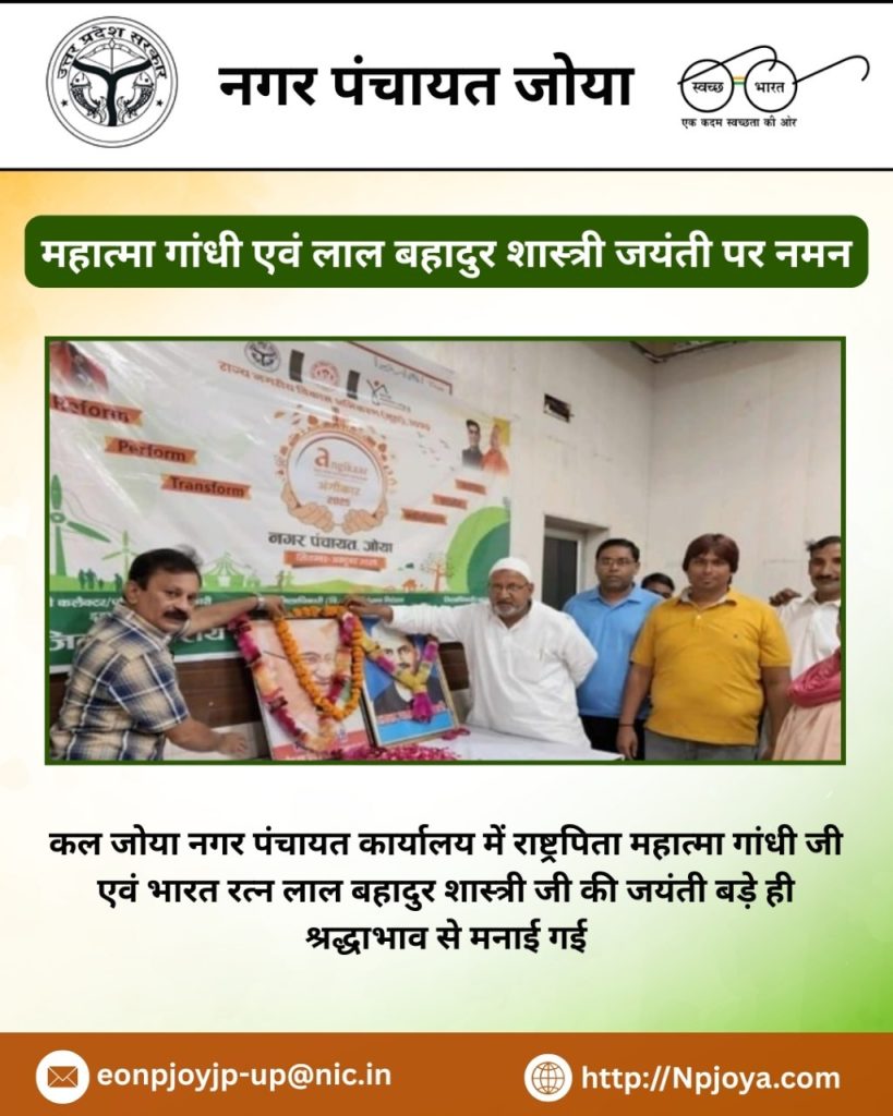 #SwachhBharat #GandhiJayanti #ShastriJayanti #Transform2025 #NagarPanchayatJoya #CleanlinessIsService #BharatRatna #JoyaNagar #GreatLeaders